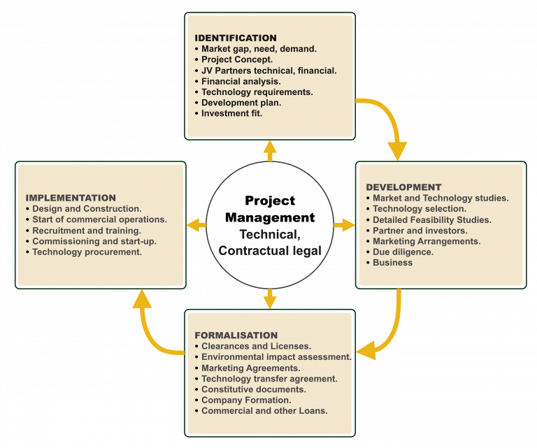 Promoting and investing in projects, syndicating other investors, raising finances, managing implementation from concept to commercial operations, including legal and contractual documentation.